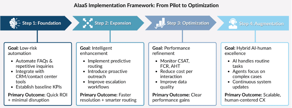 Implementing AIaaS should focus on building a structured rollout that maximizes ROI. Organizations that generate the strongest results treat AI as an enhancement to their service model rather than a replacement.