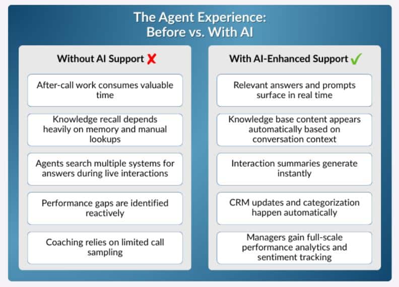 AI's value goes beyond customer-facing automation. AI is great for supporting agents in real-time to help them deliver consistent, high-quality service. This shift is most visible in how daily work changes for frontline teams.